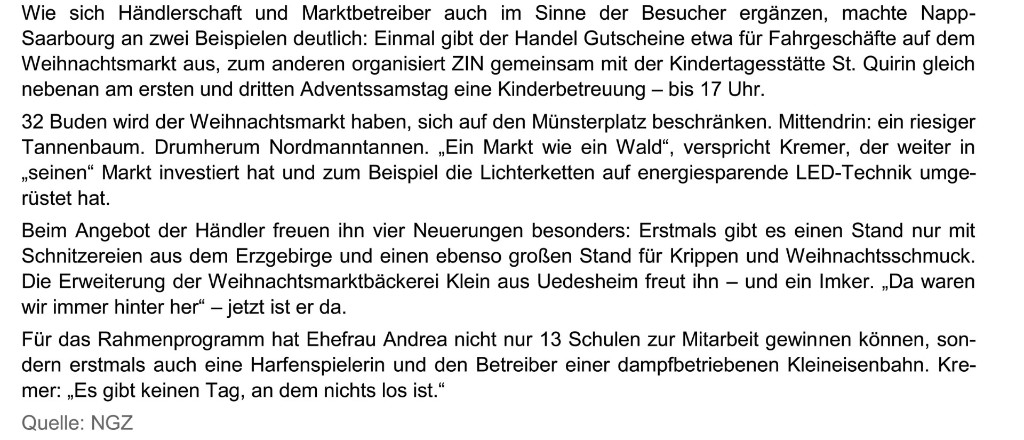 Medienberichte über "unseren" Neusser Weihnachtsmarkt